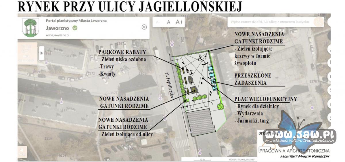 Pomysł na rynek w Szczakowej przy ulicy Jagiellońskiej, w miejscu wyburzonych budynków. Materiały UM Jaworzno