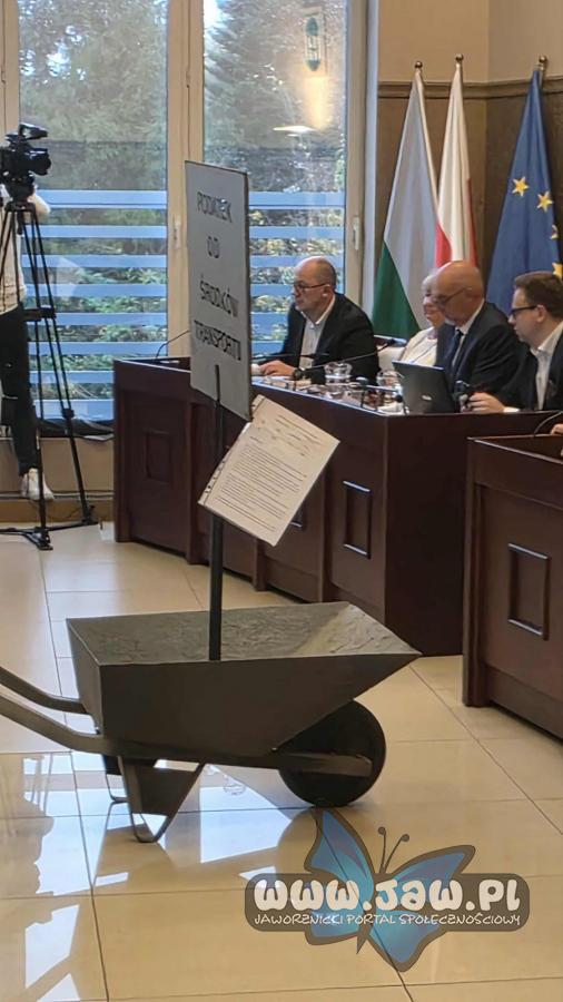 Taczka na sesji Rady Miejskiej w Jaworznie