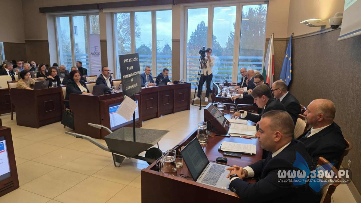 Taczka na sesji Rady Miejskiej w Jaworznie
