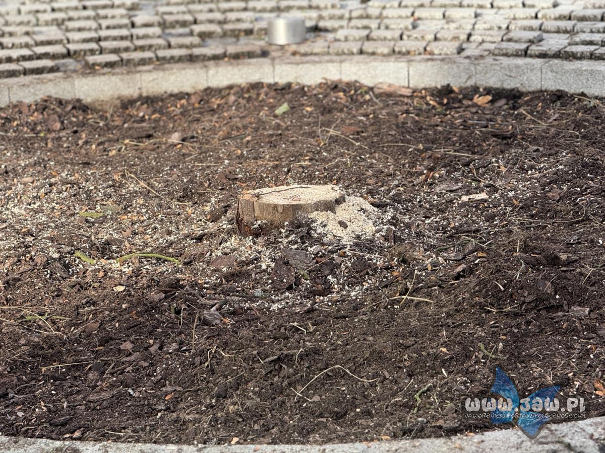 Na Rynku w Jaworznie wycieli jawora. Fot. MZDiM Jaworzno