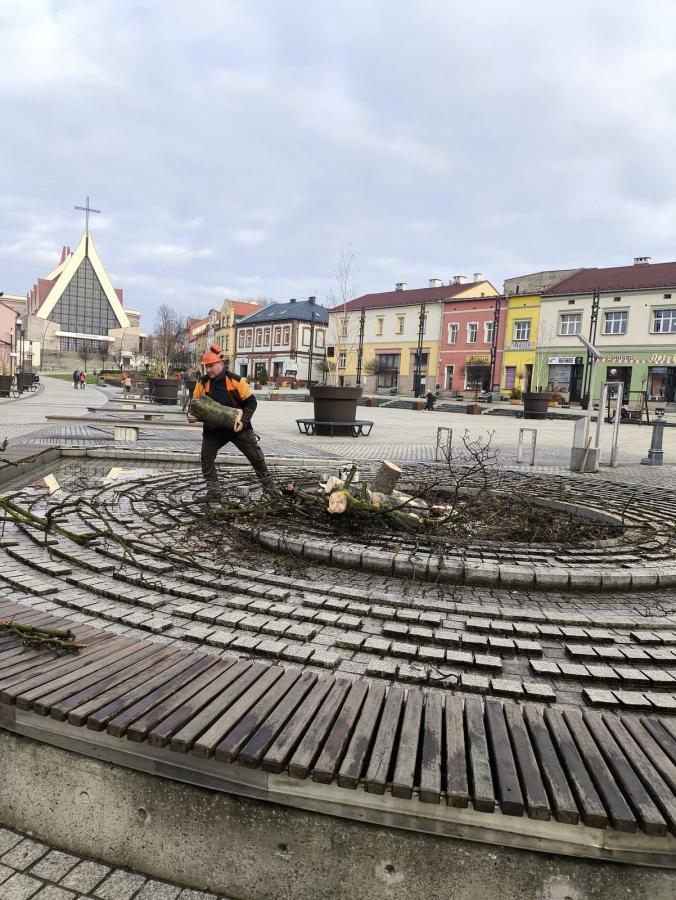 Na Rynku w Jaworznie wycieli jawora. Fot. MZDiM Jaworzno