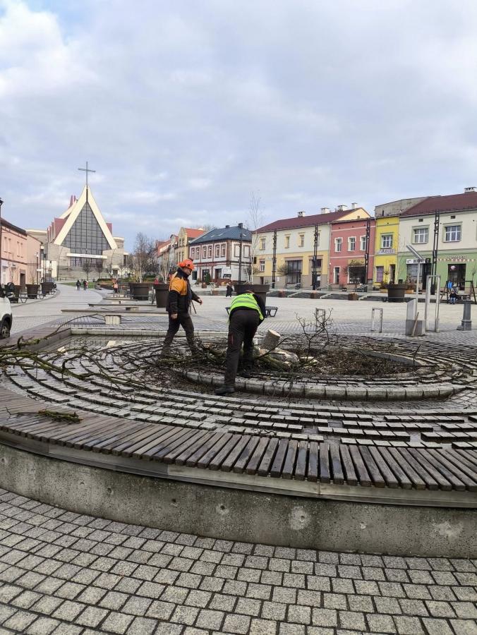 Na Rynku w Jaworznie wycieli jawora. Fot. MZDiM Jaworzno