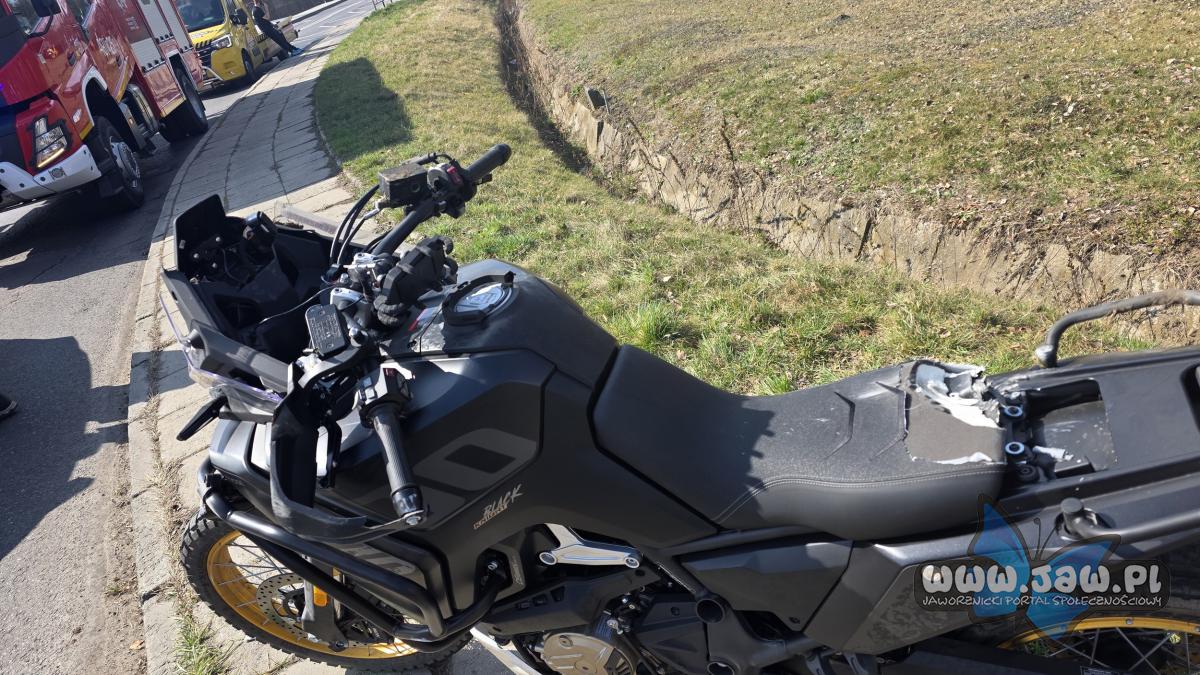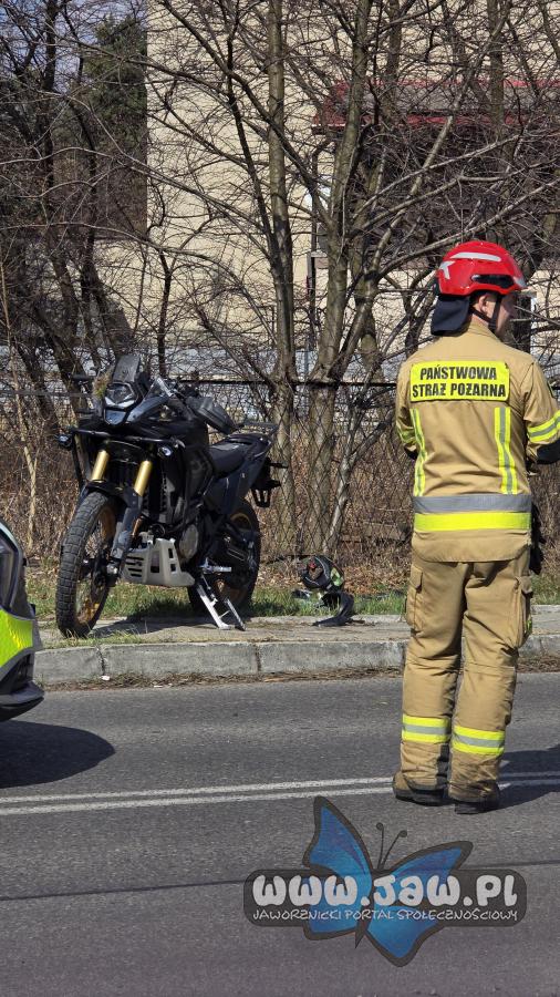 Wypadek drogowy na ulicy Chełmońskiego w Jaworznie. Motocyklista trafił do szpitala