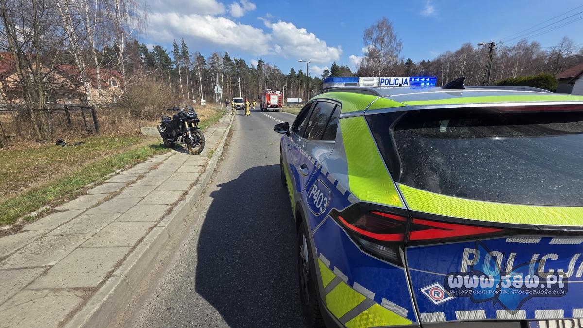 Wypadek drogowy na ulicy Chełmońskiego w Jaworznie. Motocyklista trafił do szpitala